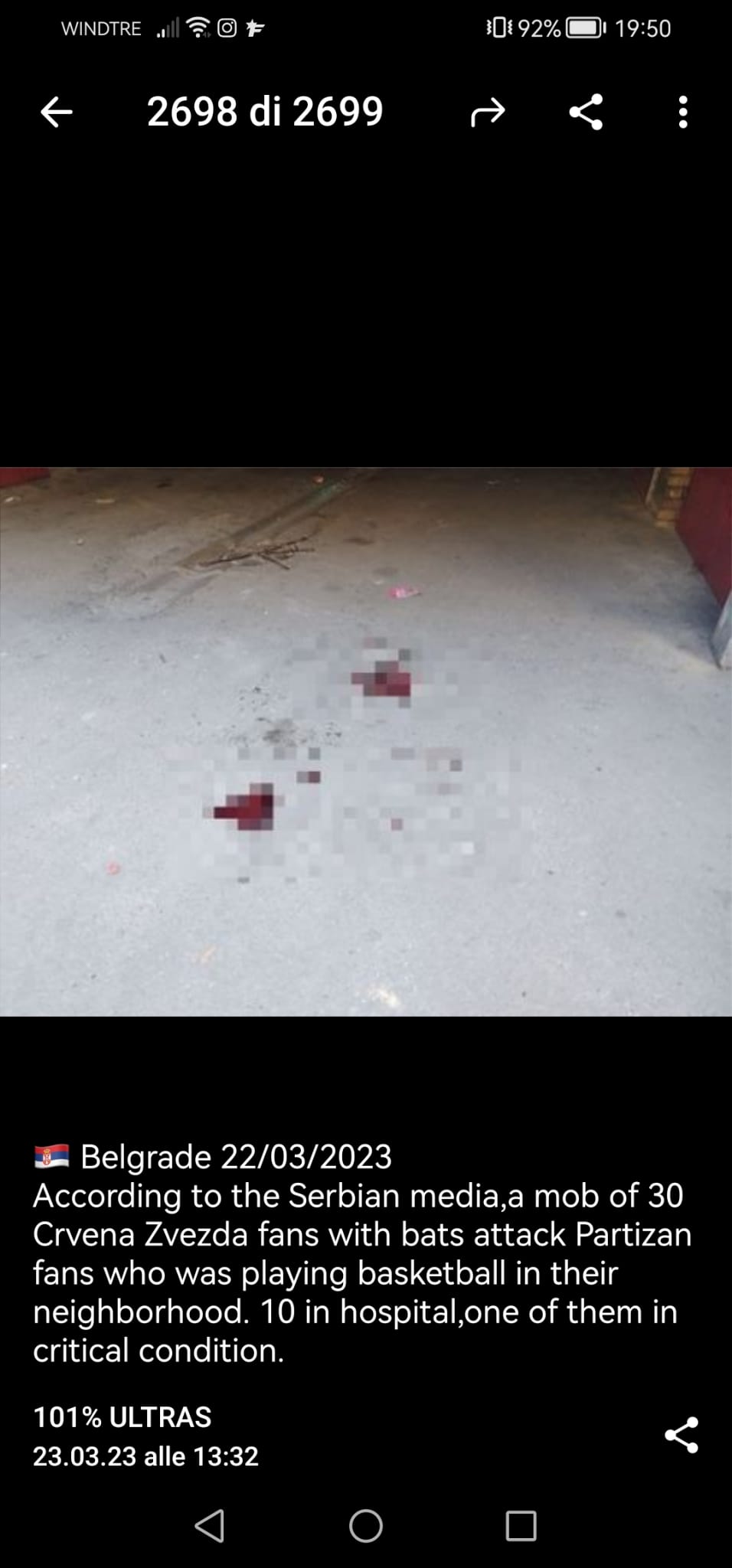 Il derby di Belgrado tra la Stella Rossa e il Partizan nutre radici profonde e l'odio va al di là del semplice ambiente calcistico. Le due tifoserie seguono con passione qualsiasi sport le società disputano, in particolar modo il basket. Stando alle informazioni che arrivano dai media serbi, circa 30 ultras Zvezda hanno teso un agguato ai sostenitori del Crno-beli che avrebbero dovuto seguire la partita di pallacanestro dei loro beniamini.