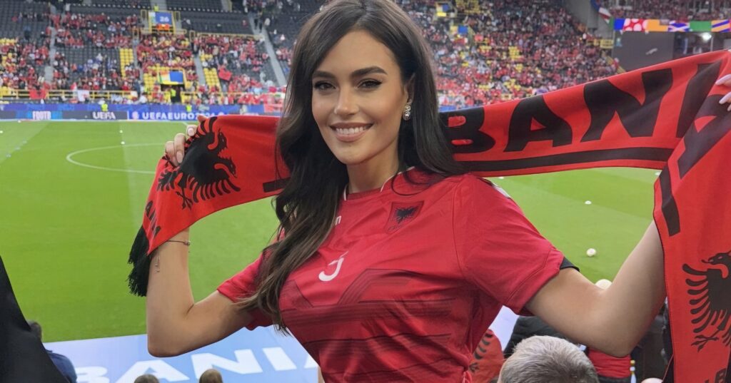 L'attrice e conduttrice televisiva albanese di 28 anni segue con passione il calcio e in questi giorni si trova in Germania per seguire l'Europeo. Era a Dortmund anche per Albania-Italia.
