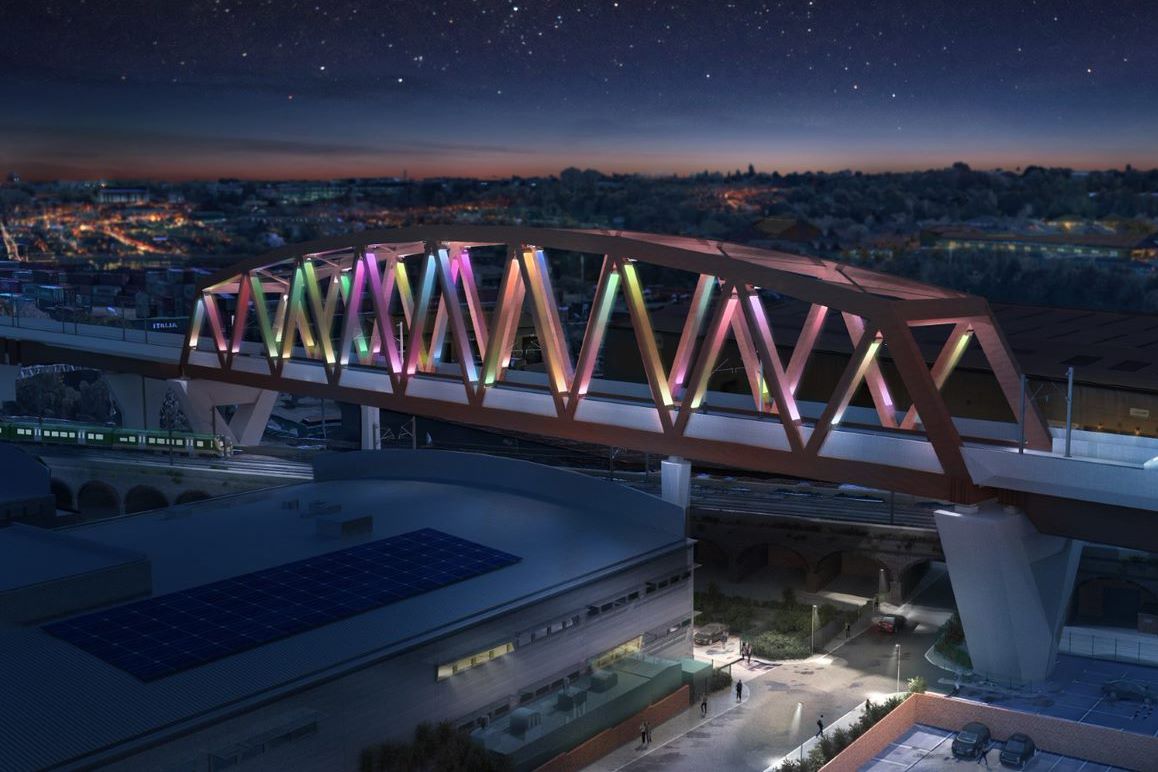 Il Consiglio comunale di Birmingham ha approvato i progetti per un nuovo ponte ferroviario che porterà la HS2 dentro e fuori il centro della città. Una sezione di 150 metri del viadotto che porta i treni HS2 alla nuova stazione di Curzon Street avrà una travatura alta 25 metri che potrà essere illuminata di notte.