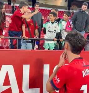 Osasuna, piccoli tifosi si contendono la maglia di Aimar Oroz a sasso-carta-forbici