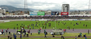 Con il degenerare della situazione la polizia ha fatto il suo ingresso in campo con gli scudi antisommossa per placare la furia dei tifosi dell'Olmedo e mettere in sicurezza la squadra ospite.