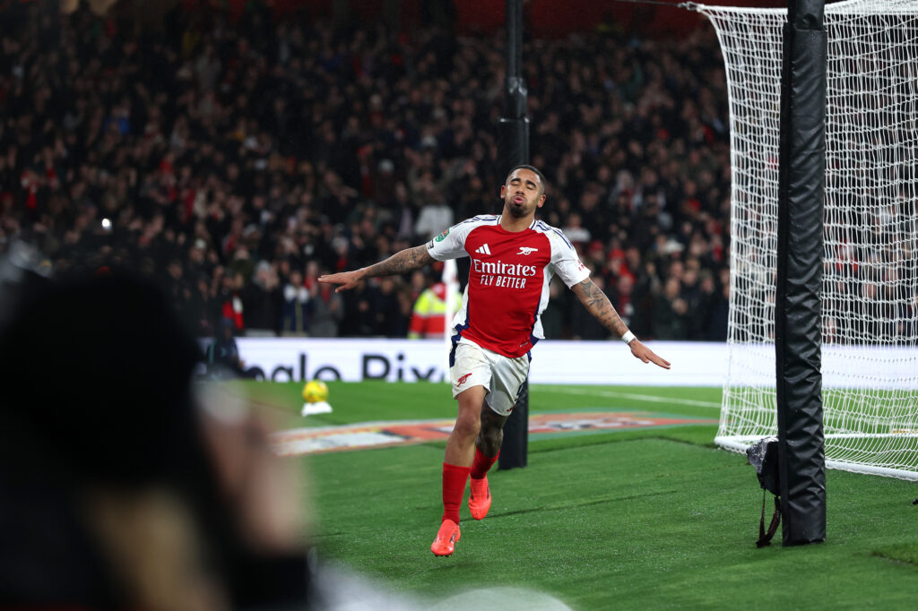 Gabriel Jesus show nel primo tempo, si fa male Saka