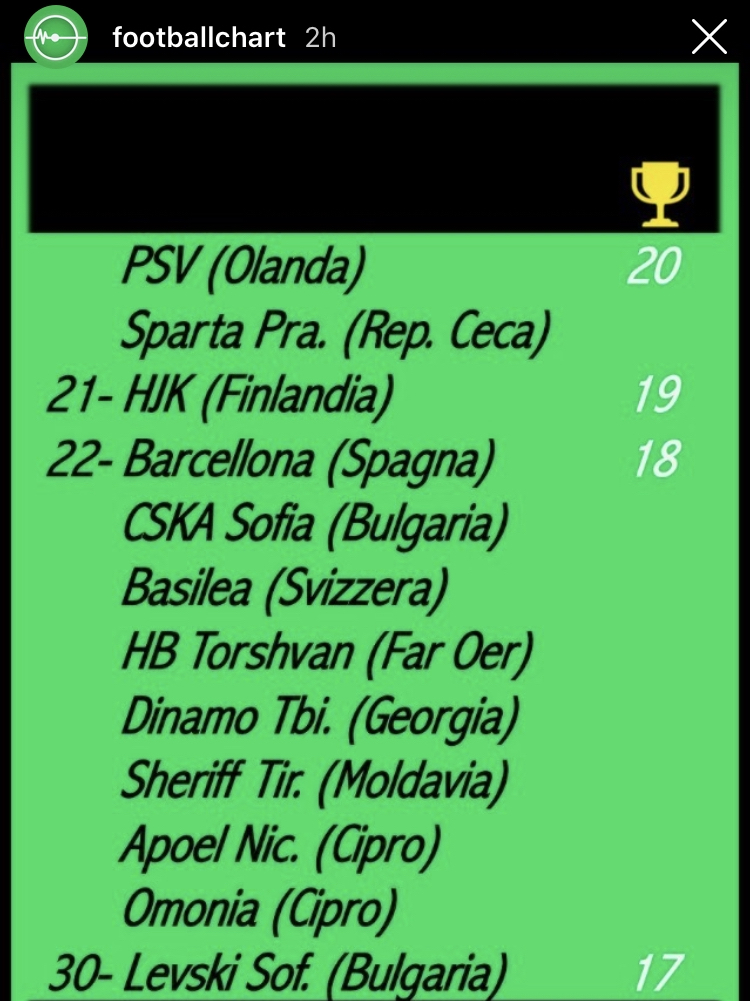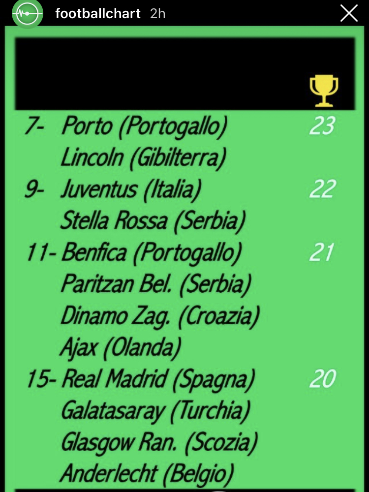 Limitando la statistica ai maggiori cinque tornei europei, la Juventus è la squadra che più si avvicina al Bayern Monaco (22), seguita da Real Madrid (20), Barcellona (18), Manchester United (13) e Liverpool (11, quasi 12).