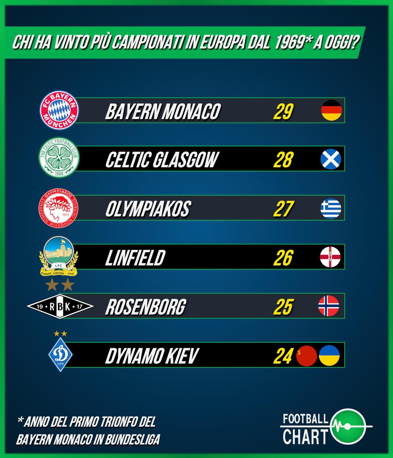 Nessuna squadra europea ha vinto più titoli nazionali del Bayern Monaco dal 1969 a oggi