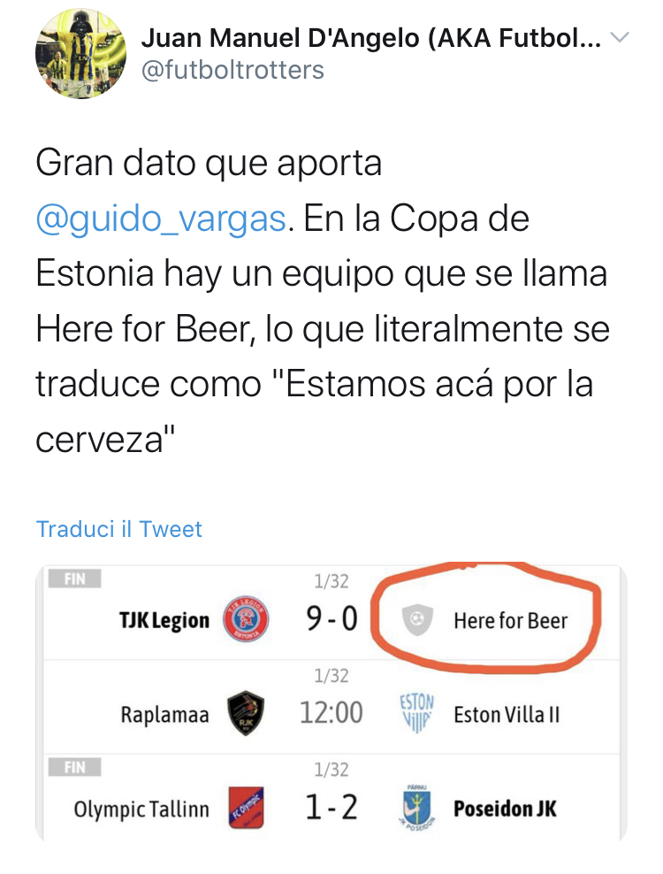 L’HF Beer non è l’unica squadra a nomenclatura particolare. Ci sono anche realtà come il Maardu Aliens, il Poseidon JK... o l’Eyjafjallajökull, dal nome dal vulcano attivo che stava per impedire al Barcellona di giocare contro l’Inter l’andata della semifinale di Champions 2010.