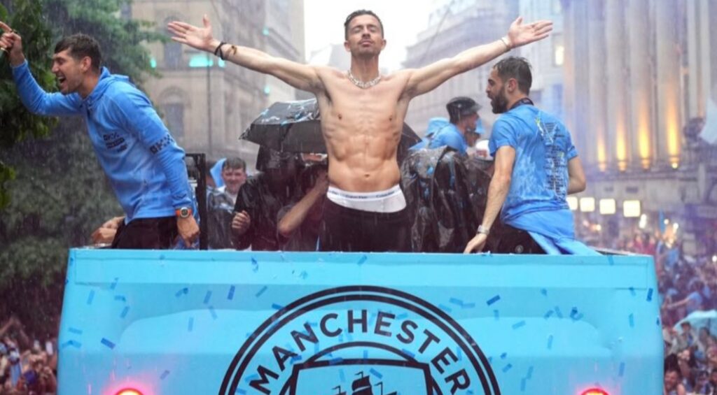 Festa Citizens, Grealish ruba la scena a Rodri: e la tifosa la bacia lui...