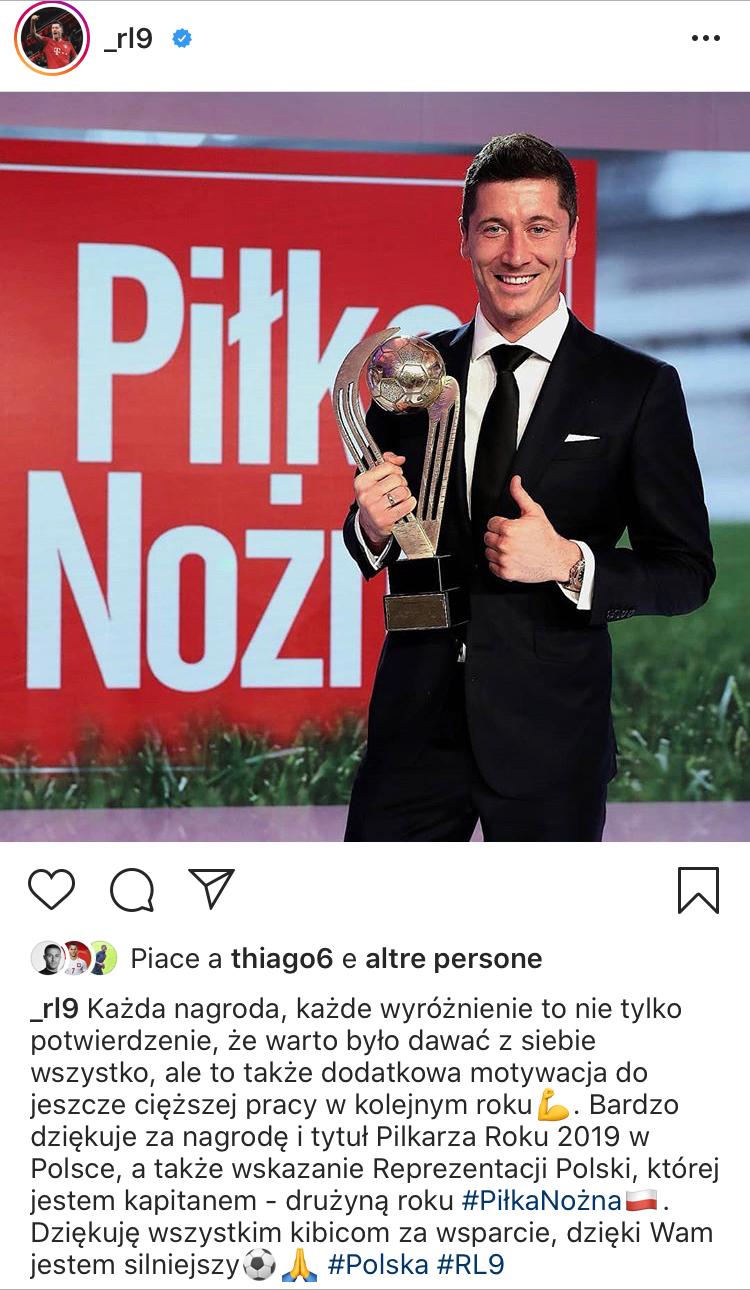 Robert Lewandowski è stato eletto il miglior calciatore polacco dell’anno dalla rivista “Pilka Nozna”. È l’ottava volta che il centravanti polacco, dal 2014 al Bayern, riceve questo riconoscimento dal magazine del suo paese. “Mille grazie a tutti i tifosi! Ogni premio non è solo una conferma dell’importanza del lavoro, ma un’ulteriore motivazione per lavorare ancora di più“, ha scritto Lewandowski sul suo account Instagram. Con 224 gol in 310 partite è salito al terzo posto nella classifica all time dei marcatori della Bundesliga, dietro Klaus Fischer (268/535) e Gerd Müller(365/427).