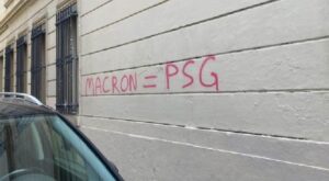 Scritta sui muri di Marsiglia: Macron è come il Psg. Un accusa importante, vista la rivalità fra l'Olympique e il club degli sceicchi.