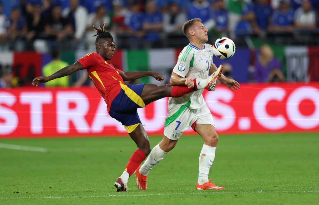 La Spagna supera 1-0 l'Italia nella gara valevole per la seconda giornata della fase a gironi del Gruppo B del Campionato Europeo 2024 e stacca il pass per gli ottavi di finale. Merito di un autogoal di Calafiori, di una prestazione delle Furie Rosse nettamente superiore a quella degli azzurri e di uno straordinario Nico Williams che sulla fascia sinistra ha messo in grande difficoltà Giovanni Di Lorenzo.
