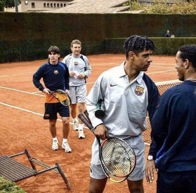 Non serve essere uno studioso di calcio o un accanito amante del pallone per rendersi conto che Lionel Messi e Ronaldinho si sono trovati molto bene in campo. Lo hanno fatto anche fuori, e questa foto di loro due che giocano a tennis, con Frank Rjikaard come mediatore, lo dimostra. Il gioiellino fotografico risale al 2004, quando un giovane Messi muoveva i primi passi a Barcellona e poi riuscì a dispiegare la sua magia sull’erba verde del Camp Nou al fianco del brasiliano.
