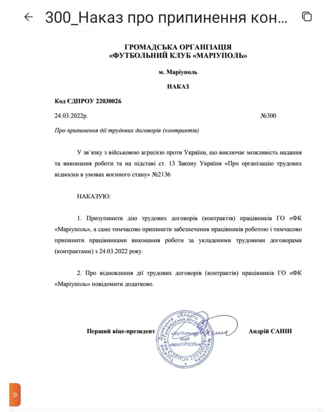 Avendo perso tutte le sue infrastrutture a causa degli incessanti bombardamenti su Mariupol dall'inizio dell'invasione russa in Ucraina, l'FC Mariupol non è in grado di riprendersi.
