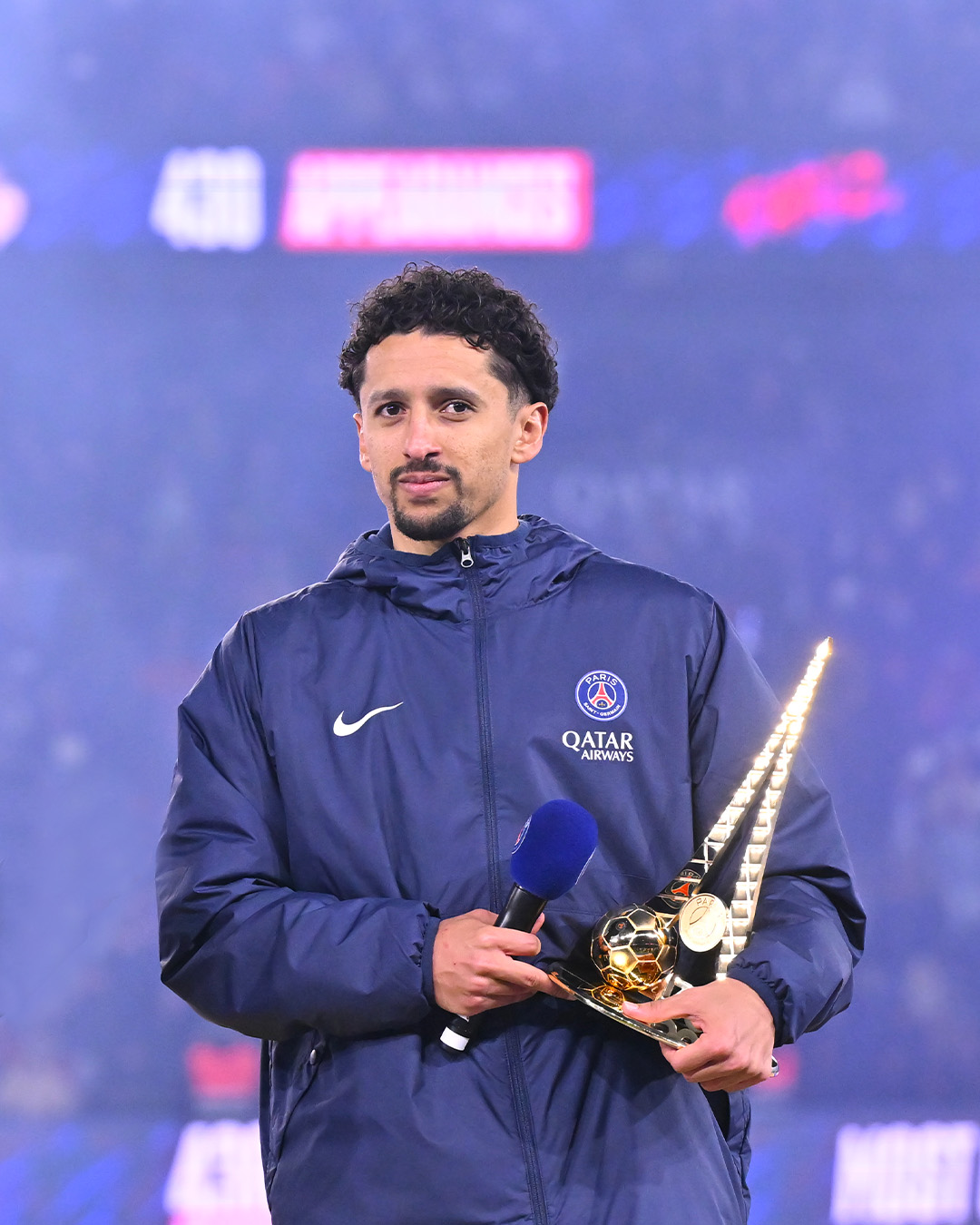 "È incredibile, è una serata ricca di emozioni per me, è l'orgoglio più grande mostrare questo trofeo", ha detto al microfono Marquinhos, acclamato dal pubblico. "Il Psg è la mia vita", ha aggiunto. Poi ha reso omaggio a Jean-Marc Pilorget del quale ha superato il record.