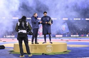 Così ieri i suoi compagni del Paris Saint-Germain, dopo essersi fatti la doccia sono tornati in campo per 'scortare' il loro capitano che era accompagnato dalla famiglia. Il presidente Nasser Al-Khelaïfi ha consegnato un mazzo di fiori prima di abbracciare il giocatore, il quale ha poi mostrato un trofeo a forma di Torre Eiffel che aveva appena ricevuto.