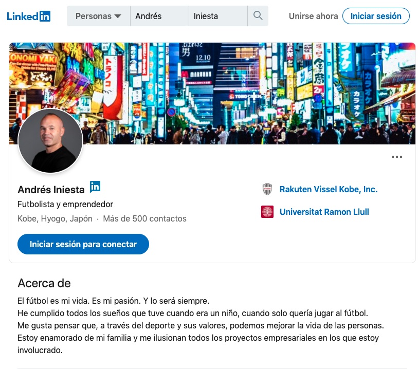Inoltre, il profilo di Iniesta evidenzia che giochi per il Vissel Kobe e abbia studiato alla Universitat Ramon Llull di Barcellona. La verità è che l’Illusionista cercherà di entrare nel mondo degli affari, anche se non ha specificato se sarà legato allo sport o ad altre categorie di tendenza in tutto il mondo.