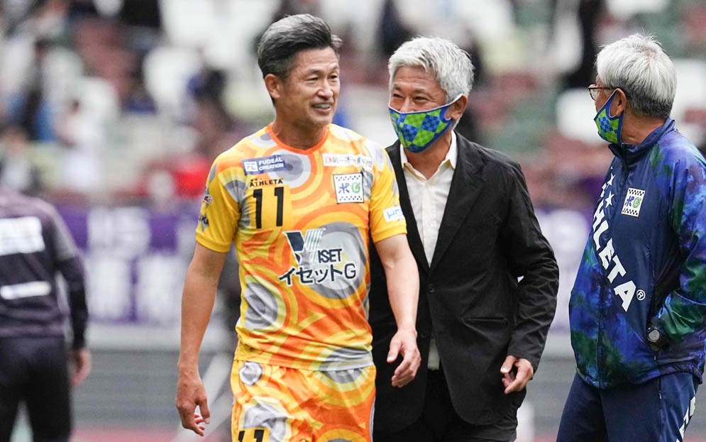 Il leggendario attaccante giapponese ha esordito domenica nel nuovo National Stadium di Tokyo con la maglia del Suzuka Point Getters, club della Japan Football League allenato da suo fratello Yasutoshi, nel successo sul Criacao Shinjuku