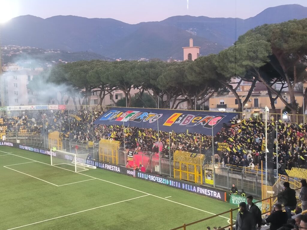 Fanno festa gli oltre 6mila spettatori presenti al Menti, dopo il derby vinto per 1-0 contro la Salernitana. La Juve Stabia guadagna il bottino più ambito, nel posticipo pomeridiano della 32esima giornata. Dopo la vittoria della Cremonese contro la Reggiana, in trasferta, le Vespe di Pagliuca accorciano il gap con i grigiorossi: 49 a 52. I gialloblù hanno trovato la rete circa dieci minuti dopo il fischio della ripresa, grazie ad un tiro centrale e potente di Fortini. La Salernitana, di contro, ha giocato un buonissimo secondo tempo, fatto di tanto cuore ma di poca precisione. Questa sconfitta nel derby, come se non bastasse, complica ancora di più la classifica della Bersagliera, che si trova sempre penultima a 30 punti: alle spalle, il Cosenza a 26, davanti, la Reggiana a 32 in coabitazione con la Sampdoria che domani disputerà il derby con lo Spezia.