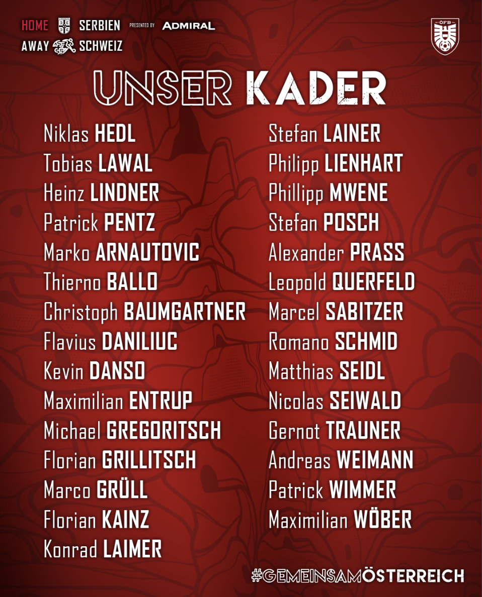 Portieri: Niklas Hedl (Rapid Vienna), Tobias Lawal (LASK), Heinz Lindner (Union St. Gilloise), Patrick Pentz (Bröndby)