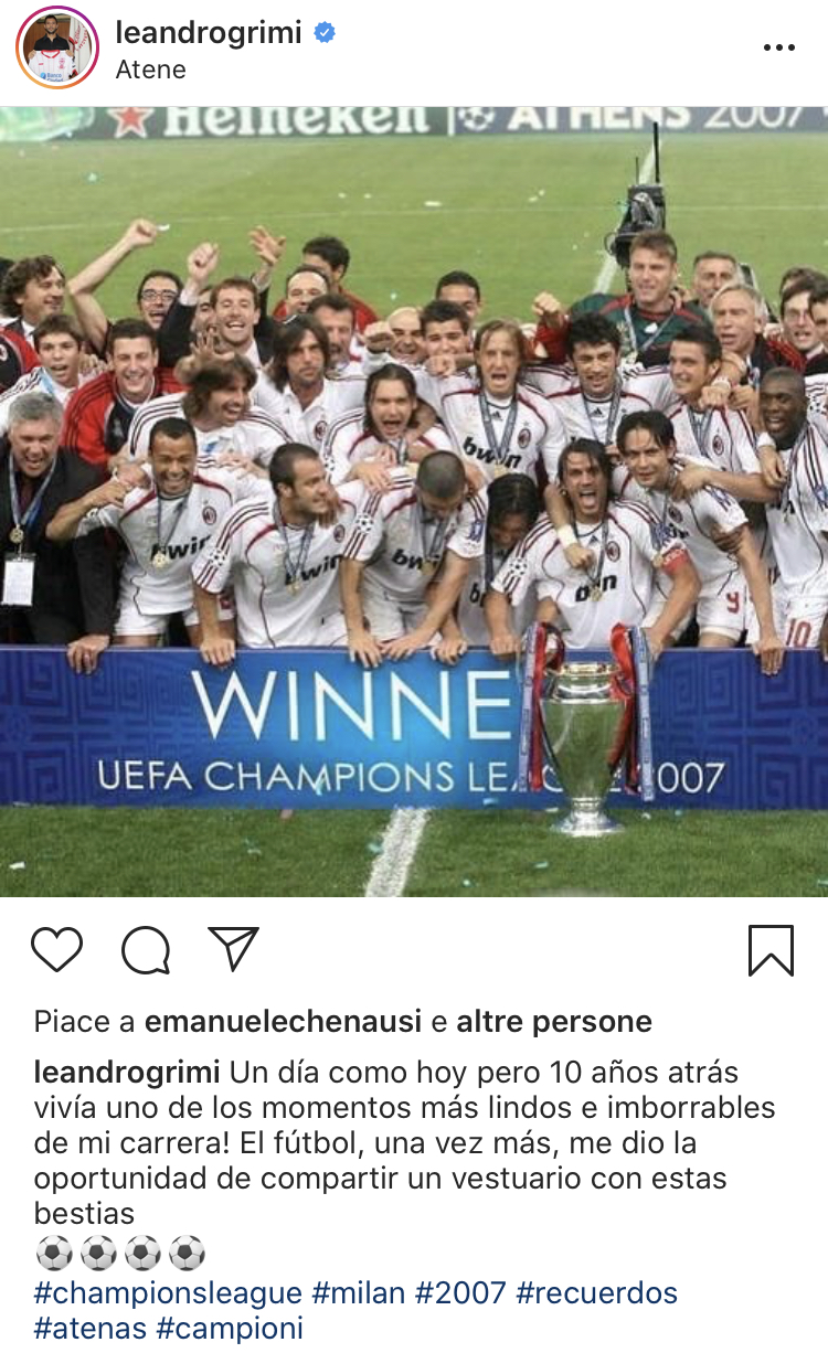 Nel mercato invernale pre-Atene 2007 il Milan, oltre a Oddo e Ronaldo, compra Leandro Grimi… Ora il 35enne difensore veste la maglia dell’Huracán, dopo aver vinto il titolo con Diego Milito nel 2014 al Racing Avellaneda con la maglia numero 3
