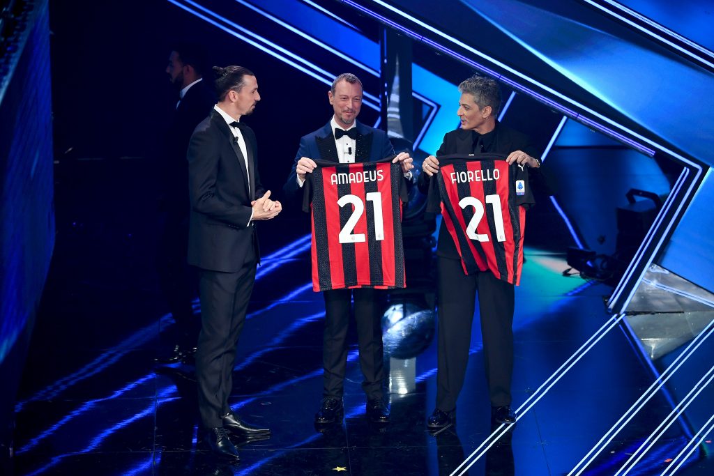 Ecco le maglie del Milan numero 21, quello di Zlatan, ai due conduttori interisti del Festival. E' proprio il caso di dirlo, lui fissa le regole e alla fine vince sempre lui. "Vi faccio un regalo - ride Zlatan - il derby di Sanremo l'ho vinto io”. Fiore e Ama ringraziano, prendono e portano a casa...