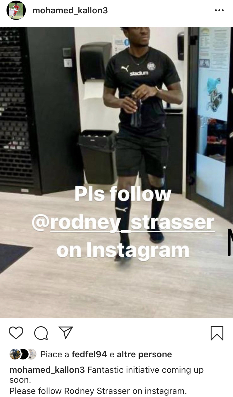 Kallon ha sponsorizzato il connazionale perché “presto verrà fuori una fantastica iniziativa” sull’account del calciatore ora in Finlandia al Turun Palloseura.