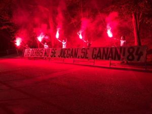 I derby non si giocano ma si vincono, ci vedranno tornare alla grande, questi i testi degli striscioni della vigilia da parte dei tifosi del Valladolid. Con tanto di fumogeni e giochi di luce.