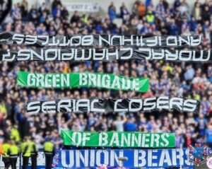 Gli striscioni erano stati precedentemente esposti dalla Green Brigade, la curva del Celtic, in una partita precedente, quando avevano attaccato Philippe Clement per i suoi commenti secondo cui i Rangers erano "campioni morali" dell'ultimo derby tra le due squadre, terminato 3-3 ad aprile. Avevano anche etichettato il club Ibrox come "perdenti seriali". Ora, è emersa una foto della vittoria per 4-1 dei Rangers sul Kilmarnock in cui gli Union Bears hanno riorganizzato gli stessi cartelli, che sarebbero stati sottratti alla Brigata Verde. Una foto dello spettacolo è stata postata da una pagina ultras su X e hanno scritto: "Union Bears (Rangers) con striscioni rubati della Brigata Verde (Celtic) per il derby della prossima settimana".