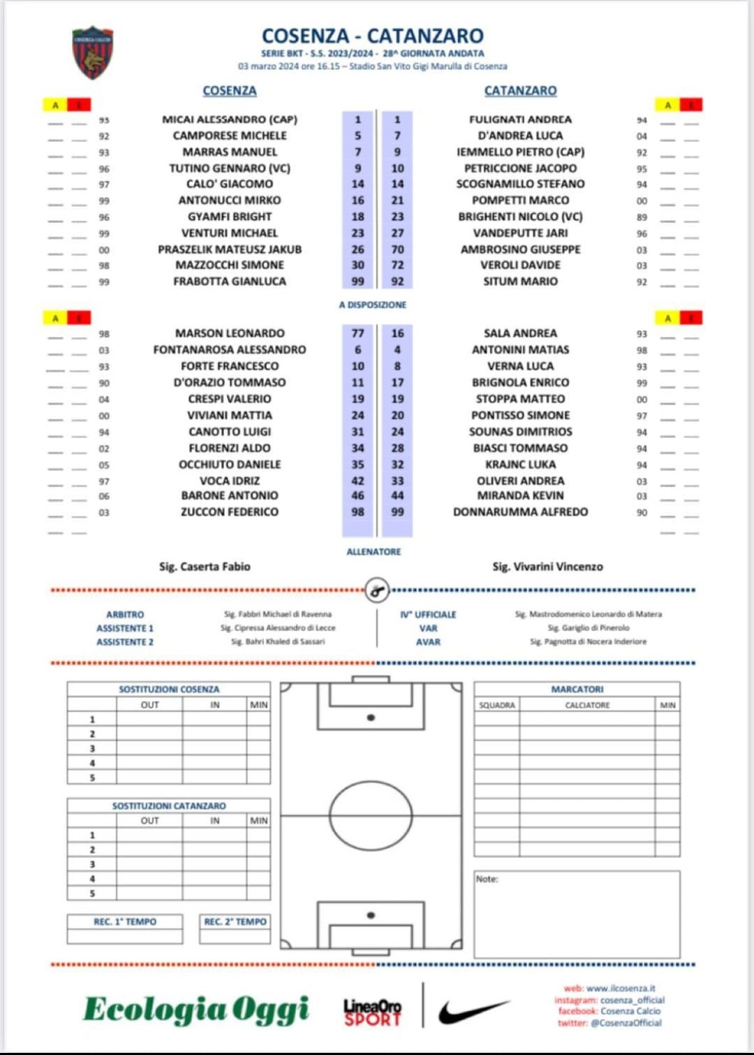 — Cosenza Calcio (@CosenzaOfficial) March 3, 2024