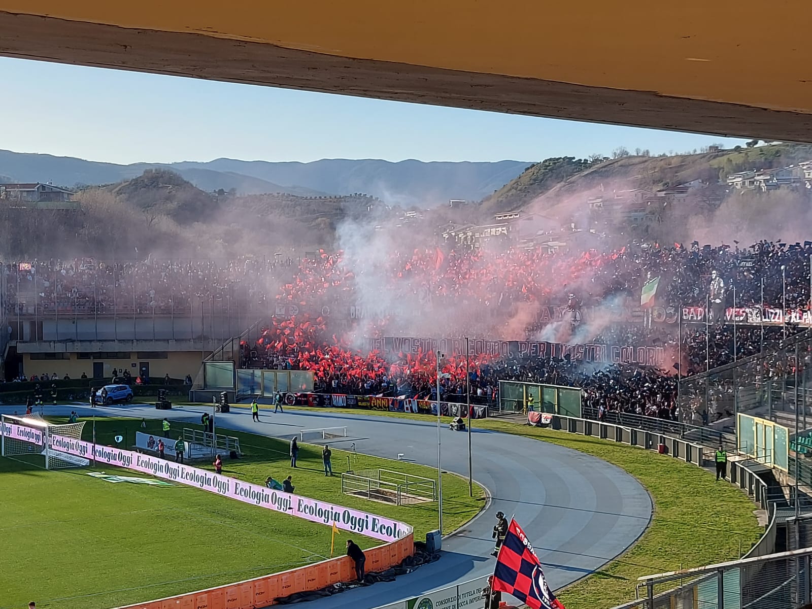 Una coreografia spettacolare quella di casa, mentre sono circa 800 i tifosi catanzaresi che hanno potuto avere accesso allo stadio bruzio.