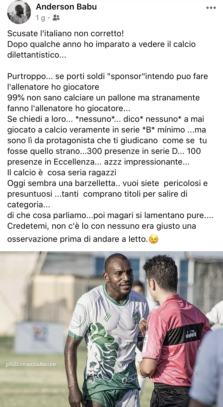 Vi ricordate di Babú? L'ex attaccante di Lecce, Venezia e Salernitana tra le altre, si è sfogato su Facebook contro le dinamiche delle serie minori, in un italiano non corretto come da lui scritto.