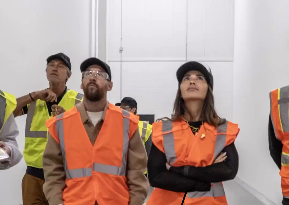 Ovviamente, non ci è voluto molto perché apparissero commenti che sottolineavano il suo look da fabbrica con gilet ignifugo e occhiali di sicurezza.