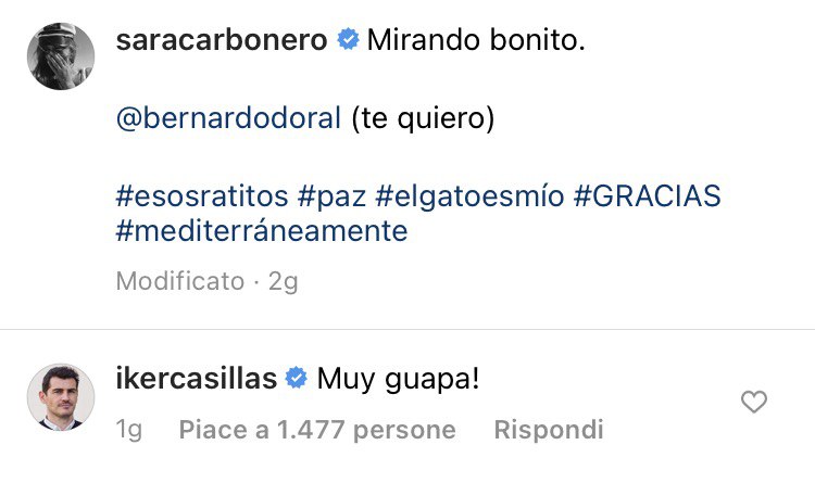 Da quando la coppia Casillas-Carbonero ha annunciato la separazione, entrambi vengono guardati con una lente d’ingrandimento, soprattutto su Instagram, dove sono frequenti i gesti di affetto tra di loro. Se Iker Casillas ha recentemente inviato un bacio a Sara Carbonero attraverso questo social, ora le ha fatto addirittura apertamente i complimenti.