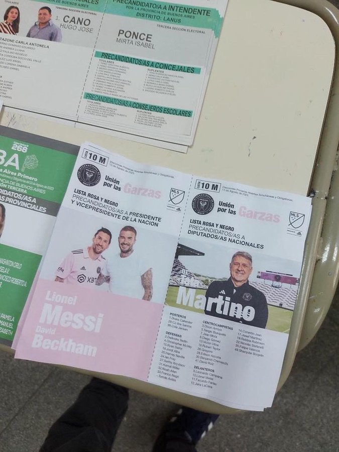 Lionel Messi ha suscitato grande clamore fin dal suo arrivo all’Inter Miami, da lui portato alle semifinali della Leagues Cup con otto gol in sole sei partite. Tale è l'euforia per il capitano dell’Argentina che, nelle elezioni primarie tenutesi domenica 13 agosto per eleggere i candidati alla presidenza della Nazione (Elecciones PASO 2023, nda), è spuntata la sua scheda elettorale, contraddistinta per la combinazione di rosa e nero e del numero 10.