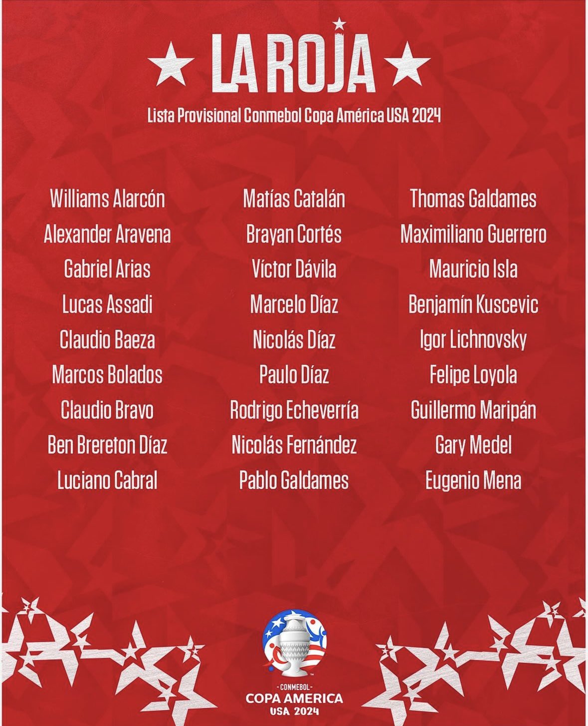 Il commissario tecnico del Cile Ricardo Gareca ha annunciato la sua rosa provvisoria per la Copa América, che si disputerà dal 20 giugno al 14 luglio negli Stati Uniti.