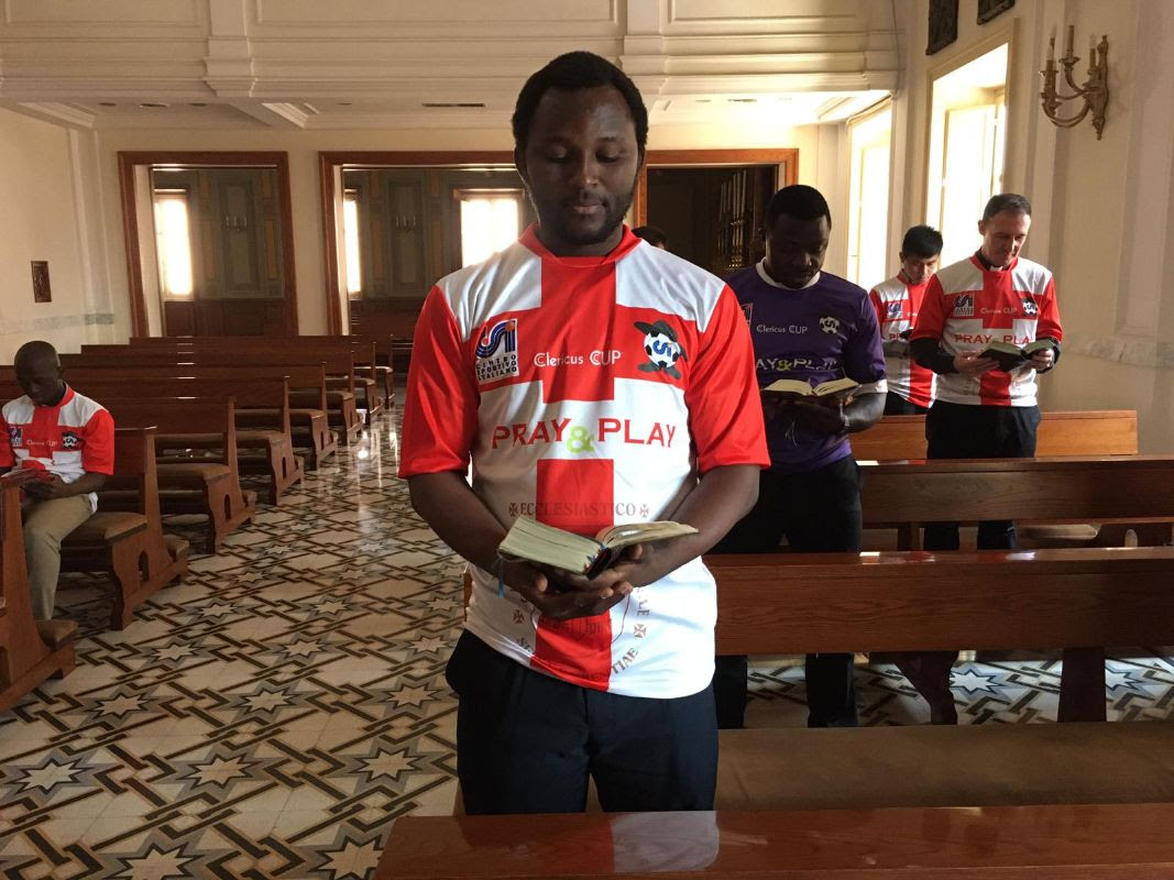 C’è un solo campionato che sta “giocando” le sue partite: è il Mondiale ecclesiastico del Centro Sportivo Italiano. Ormai è un coro. Senza giocare a calcio, la Clericus Cup fa sentire la sua voce missionaria. Una preghiera costante, nei giorni dei riti della Settimana Santa. Più alta, perché vicini alla Pasqua, che per ogni cristiano, rappresenta un traguardo, un segno di rinascita, una ripartenza. Lo sanno bene i presbiteri e i seminaristi – giocatori, fermi per l’emergenza del Coronavirus – delle 16 squadre iscritte al torneo. “Pray and Play” c’è scritto sulle loro maglie di questa 14ma edizione presentata a fine febbraio, prima che il Covid 19 fermasse l’avvio della manifestazione. Ecco allora che dai collegi pontifici arrivano i gol nelle invocazioni e nelle raccomandazioni dei protagonisti. “Oggi entriamo in campo per una importante partita della Clericus Cup, quella del ‘Pray’, giacché per il momento non c’è la possibilità del ‘Play’ – prega così innanzi alla Madonnina con indosso la maglia verde-oro dell’Alleanza Luso Brasiliana, Padre Adenis Roberto de Oliveira, parroco alla chiesa di Santa Maria della Perseveranza a Roma – per chiedere aiuto al Signore di poter sconfiggere l’attuale avversario che ci sta facendo faticare così tanto. Signore, dacci la forza e la saggezza per poter trovare il giusto schema tattico che ci porterà alla vittoria contro questo difficile avversario. Padre, sei il nostro capitano, l’allenatore, il fiato, la forza! Aiutaci in questo momento e sempre. La vittoria è sicura, ma per arrivarci dobbiamo ancora combattere”.