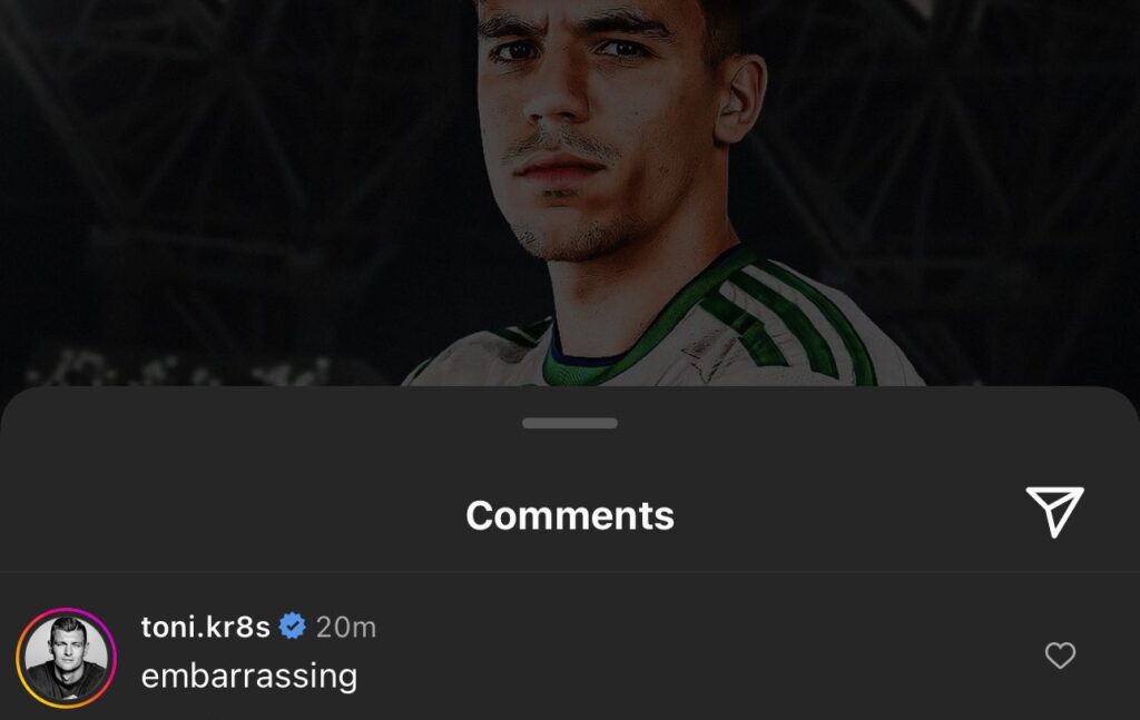 🚨 Toni Kroos' comment under @FabrizioRomano's 'HERE WE GO' instagram post for Gabri Veiga's move to Al-Alhi. 🇸🇦❌ pic.twitter.com/jitVvMK0Rn
