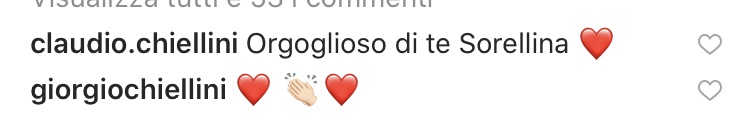 “Ciao sono Silvia Chiellini, ultima di quattro fratelli. Ovviamente io sono la più forte. Anche di Giorgio”, aveva detto a Sky Sport qualche giorno prima della proclamazione. In quella circostanza aveva svelato, inoltre, che durante il primo anno in Spagna era riuscita a tenere nascosto di essere la sorella di Giorgio, ma alla fine non ce l’ha più fatta ed è dovuta uscire allo scoperto.