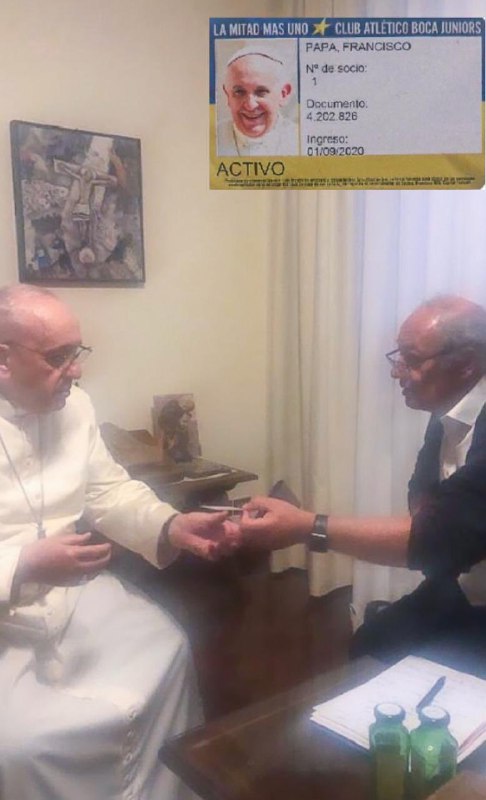 Il Sommo Pontefice, tifoso del San Lorenzo, ha ricevuto dalla dirigenza xeneize la tessera di socio N.1 nell’ambito di un progetto Chiesa-Boca Juniors teso alla promozione dello sviluppo nelle scuole argentine