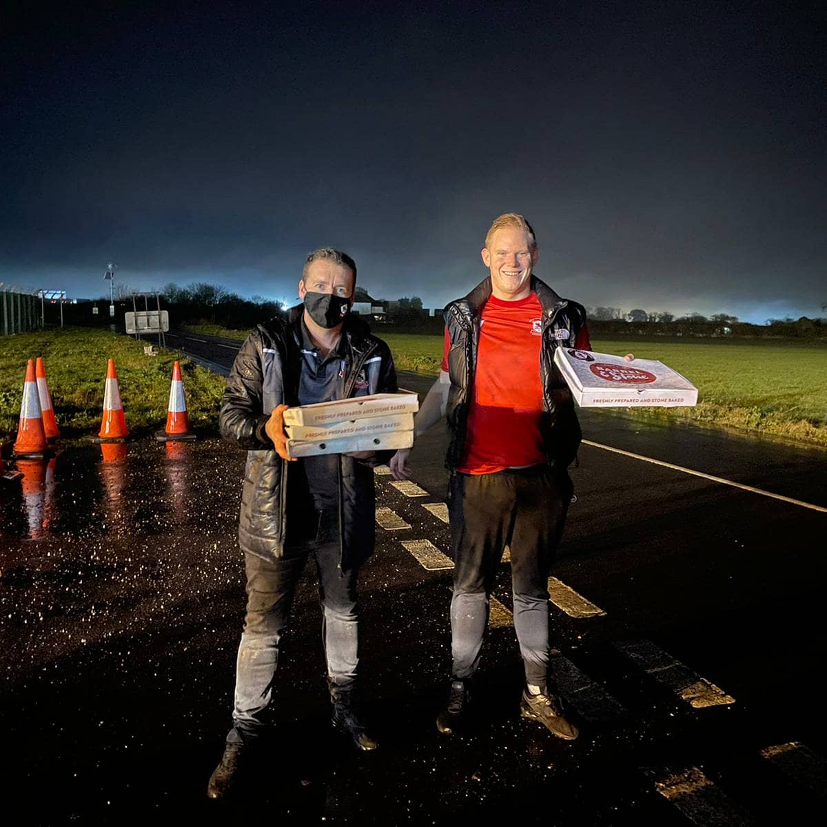 Giocatori e volontari del Ramsgate FC hanno consegnato 200 pizze a camionisti bloccati all’aeroporto di Manston, rendendo il loro Natale in coda più confortevole