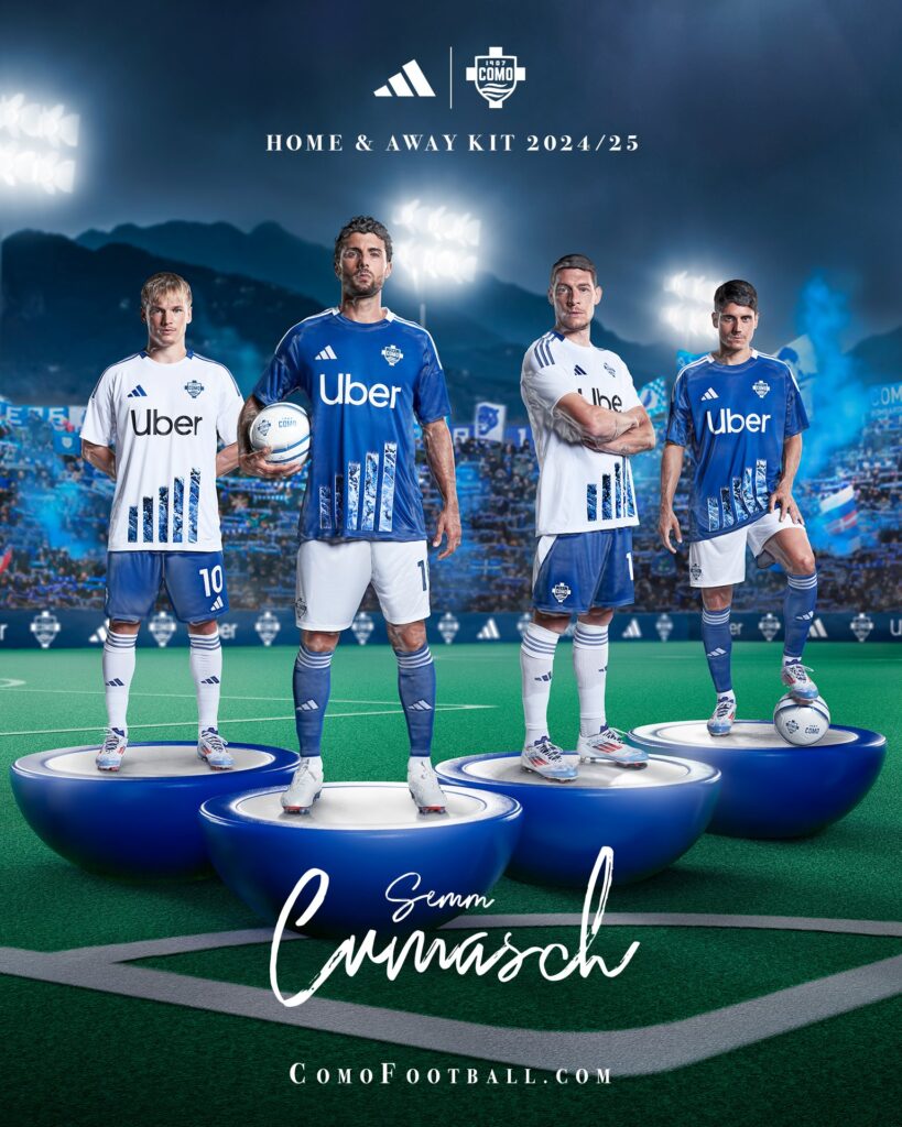 Un nuovo look, per una nuova ed entusiasmante stagione da matricola in serie A. Il Como e il nuovo sponsor tecnico Adidas hanno presentato oggi le nuove maglie home e away per la stagione 2024-25. La stampa del lago protagonista dei kit delle passate stagioni è stata ridisegnata con strisce spesse che vanno in pendenza graduale da sinistra a destra. Testimonial d'eccellenza i bomber Patrick Cutrone e Andrea Belotti.