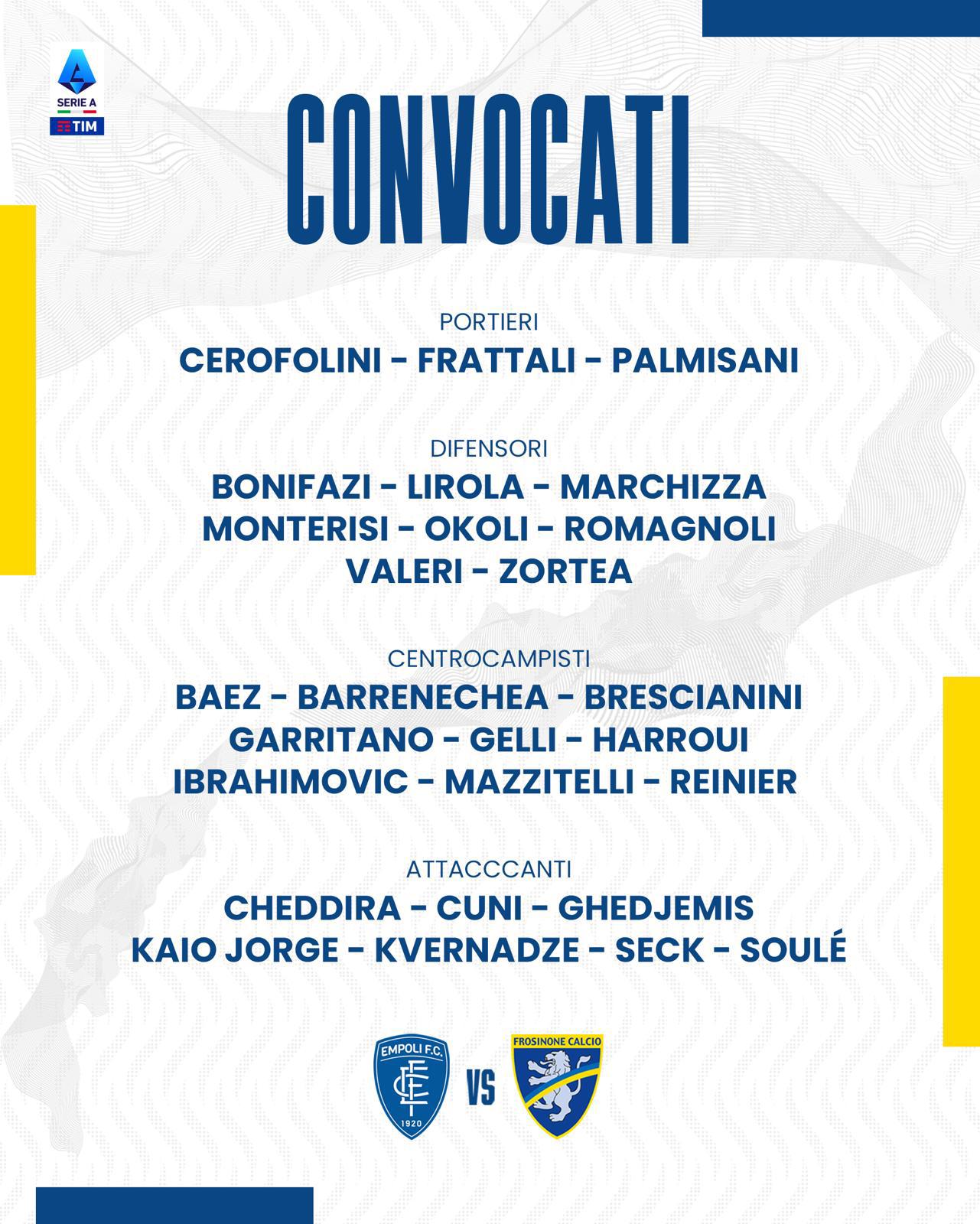 Il Frosinone è ospite domenica alle 15 dell’Empoli di Davide Nicola, che è reduce dalla sconfitta con l’Atalanta. Dopo il successo sulla Salernitana, l’allenatore Eusebio Di Francesco ha presentato così la partita del Castellani in conferenza stampa: "E' verissimo che dallo sguardo dei calciatori si può captare il loro stato ma a livello di approccio. Ora sono tutte finali, specie questa, partita particolare, molto difficile. Sono pericolosissimi in ripartenza, con Nicola subiscono poco in fase difensiva. Ho visto un grande desiderio nei ragazzi di raggiungere l'obiettivo e questa gara è fondamentale. Come sta Okoli e se è una responsabilità sapere che ci sono già 1700 tifosi pronti a venire? I tifosi sono un motivo d'orgoglio e vanto perché i tifosi ci hanno sempre sostenuto. Possono essere anche 5 o 7 per noi la responsabilità deve essere la stessa. Dobbiamo renderli ancora più orgogliosi con le prestazioni. Lavoriamo per il noi, e sono sicuro che i tifosi ci daranno un grande contributo. Okoli è tornato oggi in gruppo, domani lo valutiamo e spero di aver per domenica".