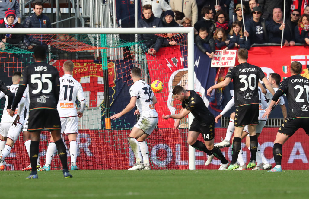 Dopo una partenza a pieno ritmo, il Genoa pareggia. La lotta rimane tesa, ma senza ulteriori reti, per tutto il secondo tempo.