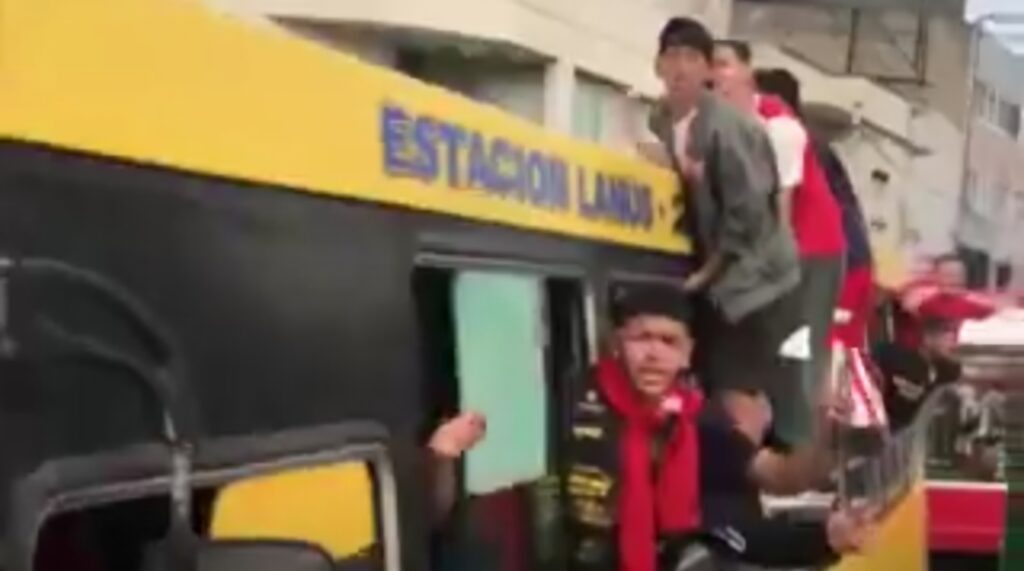 I tifosi del Banfield a cavalcioni sui pullman, verso lo stadio Quilmes per il derby contro il Talleres per la Coppa d'Argentina...
