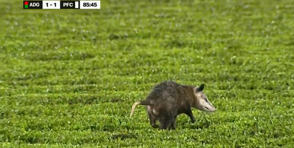 Costa Rica, opossum fa invasione di campo in Guanacasteca-Puntarenas