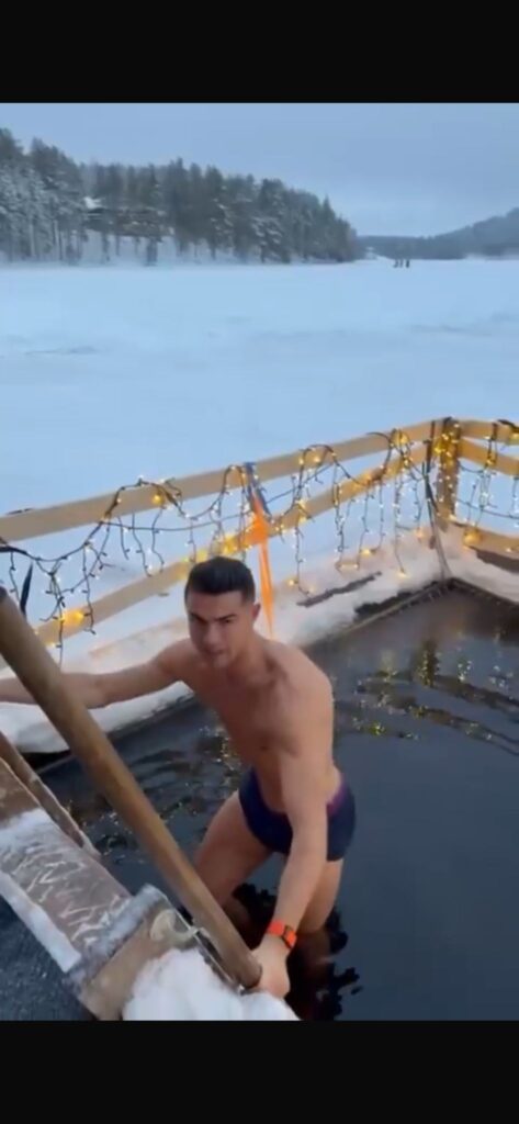 Cristiano Ronaldo si gode le vacanze natalizie con la famiglia sulla neve immergendosi in acqua bollente all'aperto in mutande. Solito fisico statuario, anche il freddo è stato battuto.