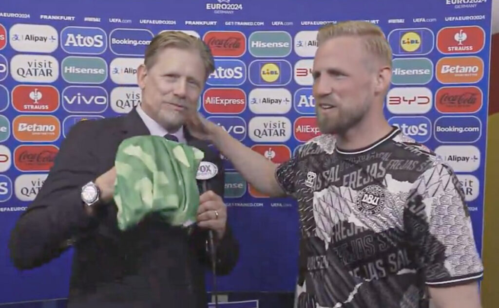 Dopo Danimarca-Inghilterra 1-1, ecco un divertente siparietto tra i due Schmeichel nella zona mista del Deutsche Bank Park di Francoforte.