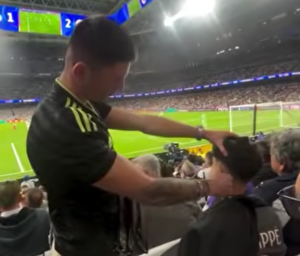 Incredibile in Real Madrid-Bayern, taglio di capelli live sugli spalti!