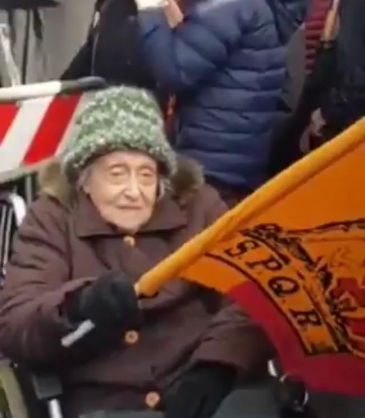 Una cara nonnina, nonostante il freddo e l'età, con la bandiera giallorossa in mano. Ecco il video...