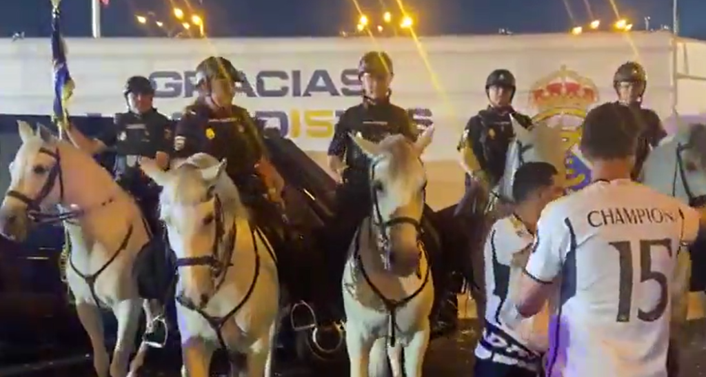 Durante le celebrazioni del Real Madrid per la conquista della quindicesima Coppa dei Campioni/Champions League, la squadra si è avvicinata ad alcuni agenti di polizia a cavallo...